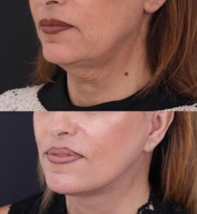 - Видимое улучшение линии подбородка и шеи уже через несколько дней.